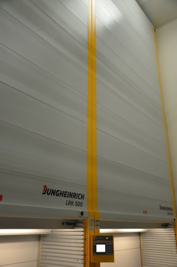 Vertikální zakladače si měří výšku zakládaného materiálu umístěného na polici, na základě čehož je optimalizováno její konkrétní umístění v systému. „Vše bylo nastaveno tak, aby se na daný prostor, kde zakladače stojí, vešlo požadované množství materiálu. Kdyby se zboží zaskladňovalo v klasických policových regálech, zabralo by podstatně více plochy skladu,“ uvedl Pawel Byczkowski, specialista na automatické systémy ve společnosti Jungheinrich.