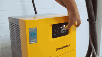Řešení Jungheinrichu využívá vozík EFX 414 s čelním posezem a otočným zvedacím zařízením pro zakládání až do 9 m. Vozík je vybaven kamerou na vidlích, indukčním naváděním a RFID pro bezpečné manévrování. Lithium-iontová baterie a aktivní ochrana osob zajišťují bezpečný a bezúdržbový provoz, připravený na poloautomatický režim.